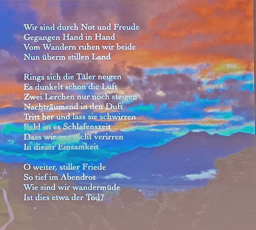 Het lied Im Abendrot gezongen door Elisabeth Schwarzkopf was de ontroerende afsluiting van een prachtige middag vol muziek. Wir sind durch Not und Freude gegangen Hand in Hand;